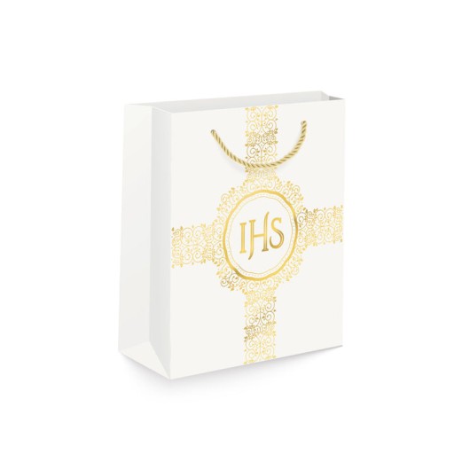 Подарочный пакет IHS для причастия, белый, 20x15см