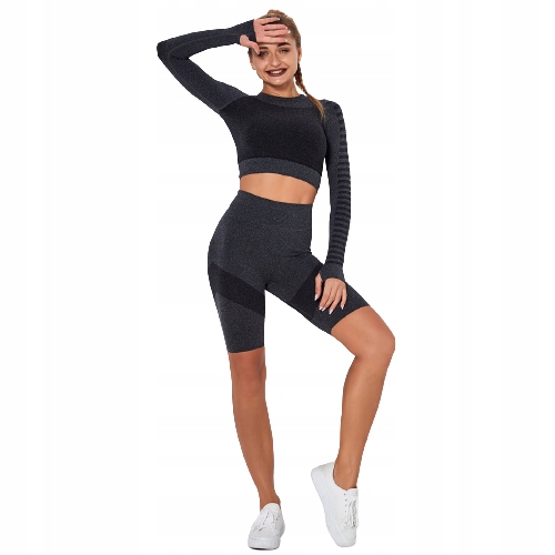 Piękny elastyczny zestaw z długim rękawem do ćwiczeń fitness jogi czy joggingu. Tkanina jest oddychająca i szybkoschnąca i i bardzo elastyczna. Idealnie przylega do ciała. Spodenki z wysokim stanem zwiększają komfort użytkowania.Zestaw optycznie modeluje sylwetkę. Perfekcyjnie sprawdza się do ćwiczeń w domu, na siłowni czy plenerze.