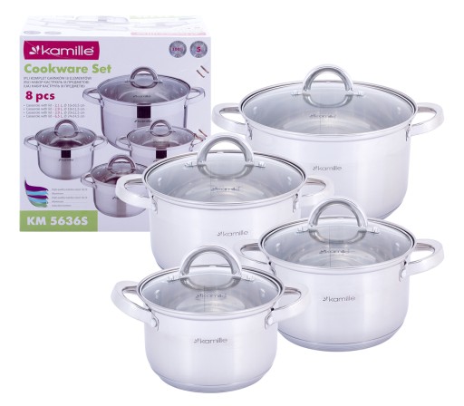 ZESTAW GARNKÓW ze stali nierdzewnej 8 el INDUKCJA KAMILLE KM-5636S