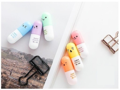Mini zakreśalcze pigułki 6 kolorów w uroczym kształcie.