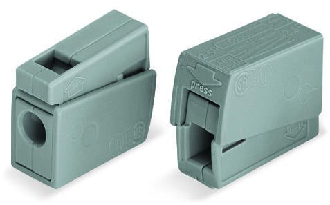 złączka oświetleniowa; przyciski: od strony oprawy ośw.; od strony oprawy: do wszyst. rodz. prze.; od strony instalacji: do przew. jednodr.; seria 224; maks. 2,5 mm²; Temperatura otoczenia maks. 60 °C; 2,50 mm²; szara