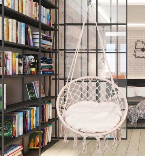 - atrakcyjny design – wiszący fotel spełnia również dekoracyjną rolę, zaprojektowany w modnym stylu BOHO, pasuje zarówno do nowoczesnych wnętrz jak i tradycyjnych mebli.
