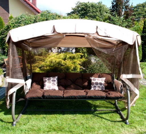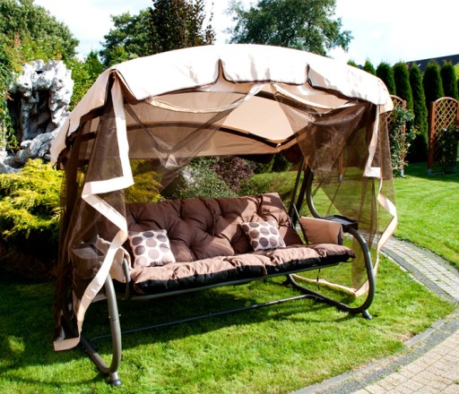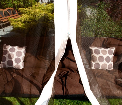 Huśtawka posiada na wyposażeniu moskitierę, która jest zamykana na zamek błyskawiczny