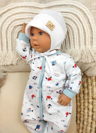 - czapeczka jest lekka , delikatna i przewiewna , idealna na lato, nie przegrzewa główki i pozwala skórze oddychać