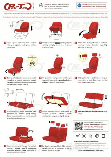 Pokrowce uniwersalne przeznaczone są na fotele standardowe z przodu i kanapą z tyłu. Ze względu na swój uniwersalny charakter, zestaw nie nadaje się do foteli kubełkowych i do foteli pojedynczych (w tym przypadku należy zastosować pokrowce szyte na miarę). Wszystkie otwory - na zagłówki, pasy bezpieczeństwa oraz regulacje itp - należy wykonać samodzielnie (materiał się nie pruje). Kanapa, w sprzedawanych pokrowcach, ma przygotowany system zamków błyskawicznych (zarówno w oparciu jak i w siedzisku), dzięki czemu pokrowce można zastosować do samochodów zarówno z kanapą całą jak i dzieloną w różnych wariantach. Pokrowce nie blokują podłokietnika w kanapie (o ile występuje). Sprzedawany zestaw występuje w jednym zoptymalizowanym rozmiarze, bez uwzględnienia charakterystycznych elementów dla konkretnego modelu (kształt kanapy, zagłówków itp.).