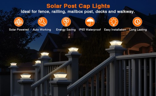 【ODPOWIEDNI ROZMIAR I ŁATWA INSTALACJA】: Nasze lampy solarne na słupki ogrodzeniowe są dostarczane z różnymi rozmiarami podstaw, które są kompatybilne z dowolnymi standardowymi drewnianymi słupkami 3,5x3,5, 4x4, 4,5x4,5, 5x5 lub winylowymi kołpakami. Szybka instalacja latarni słonecznych na pokładzie bez okablowania. Po prostu zamontuj latarnię solarną za pomocą dołączonych śrub montażowych na słupku ogrodzenia.