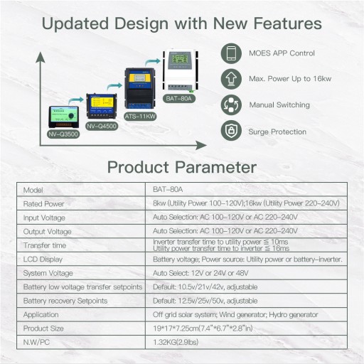 【Większa moc: zaktualizowana moc znamionowa: 8 kW (110 V) lub 16 kW (220 V) i 80 a, duży ekran LCD jest przeznaczony do wyświetlania napięcia i stanu pracy