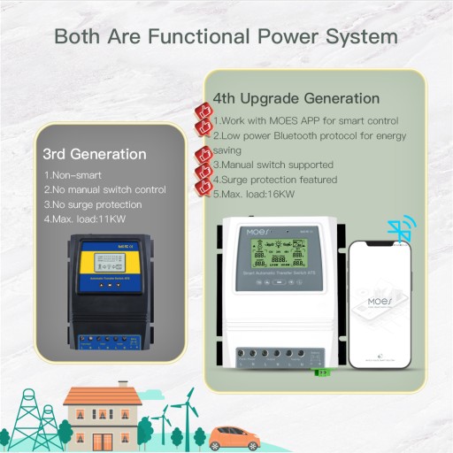 Kompatybilność z aplikacją MOES zapewnia inteligentne sterowanie przez aplikację w celu elastycznego przesyłania i użytkowania między siecią publiczną a baterią