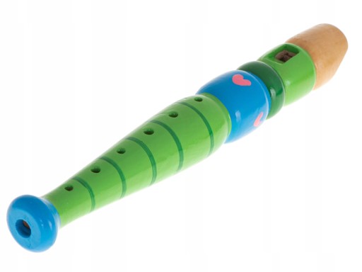 Kolorowy, drewniany flet świetnie sprawdzi się jako pierwszy instrument dziecka.