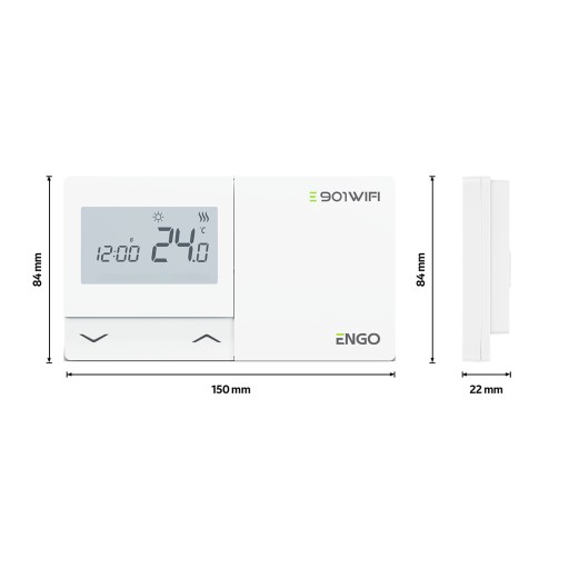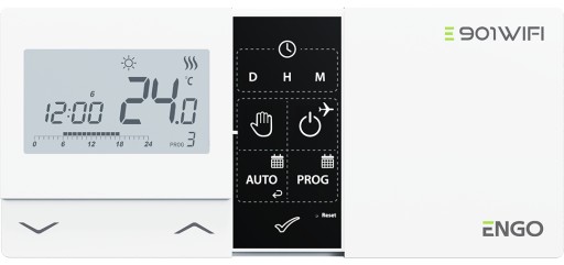 Obsługa regulatora jest bardzo prosta i pozwala dostosować cykl pracy ogrzewania do rytmu dnia użytkowników. Wbudowany moduł WiFi (w odbiorniku) umożliwia zdalną kontrolę systemu grzewczego za pomocą smartfonu lub tabletu przy użyciu aplikacji ENGO Smart / TUYA Smart.