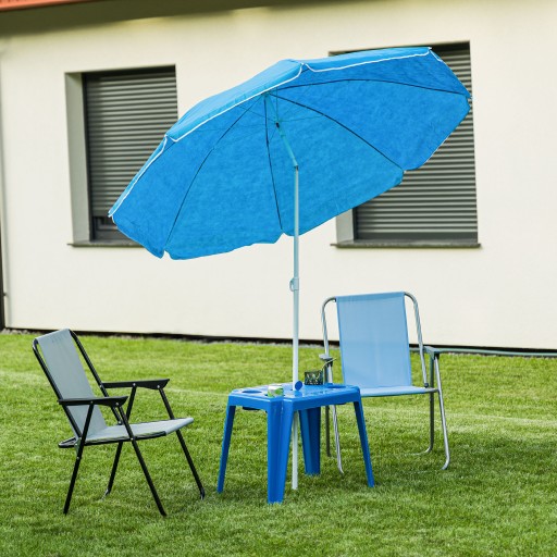 Dodatkową zaletą jest to, że parasol ma funkcję "łamania", co znaczy, że można go ustawić dowolnie w stronę słońca.