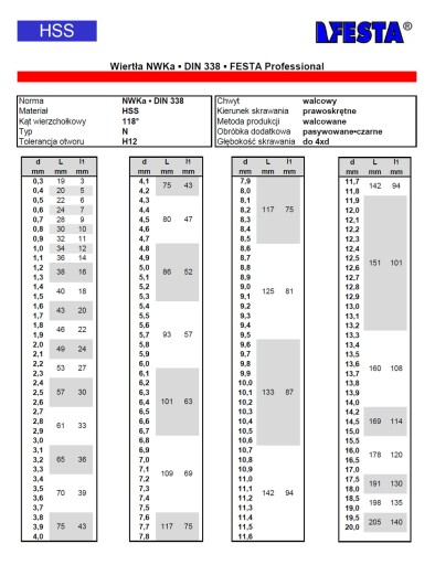 WIERTŁO NWKA DIN 338 FESTA HSS PROFESSIONAL
