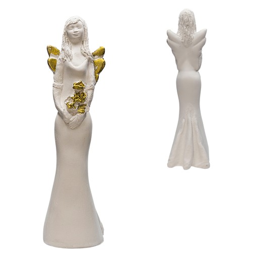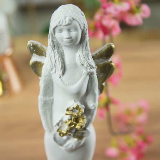 Anioł dziewczynka komunijna wykonany z gipsu, który został zaimpregnowany. Zachwyca oryginalnym wyglądem.