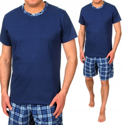 BAWEŁNIANA PIŻAMA MĘSKA Z KRÓTKIM RĘKAWEM ORAZ SPODNIAMI W KRATĘ