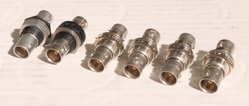 6x panelowe, tablicowe gniazdo BNC, dwustronne, przykręcane. Zdjęcia przedstawiają sprzedawany komplet.