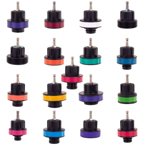 Praktyczne narzędzie, niezbędne w każdym warsztacie do szybkiego i czystego serwisu układu chłodzenia. Oznaczone różnymi kolorami nakrętki ułatwiają wybór odpowiedniego korka testowego.