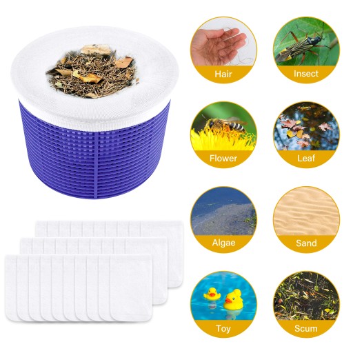 Rozciągliwa tkanina idealnie pasuje do Twojego koszyka, więc nie będzie się luzować. Mimo to możesz go zainstalować i wymienić w krótkim czasie. Nadaje się do prawie wszystkich typów filtrów basenowych, koszy lub skimmerów (w tym skarpety do skimmerów Hayward, Pentair, Swimquip itp.), instaluje się w kilka sekund i po prostu przesuwa się po koszu, aby złapać zanieczyszczenia z wody.