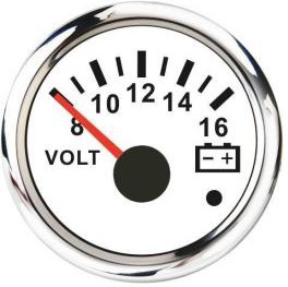 ВОЛЬТМЕТР 8-16В БЕЛЫЙ, НЕРЖАВЕЮЩАЯ РАМКА