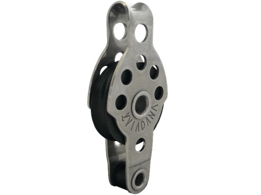 Pojedynczy bloczek nierdzewny z trwałą rolką z tworzywa sztucznego.