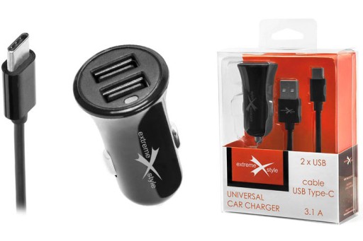 ŁADOWARKA SAMOCHODOWA – 2 X USB + KABEL USB TYP-C – 3.1A