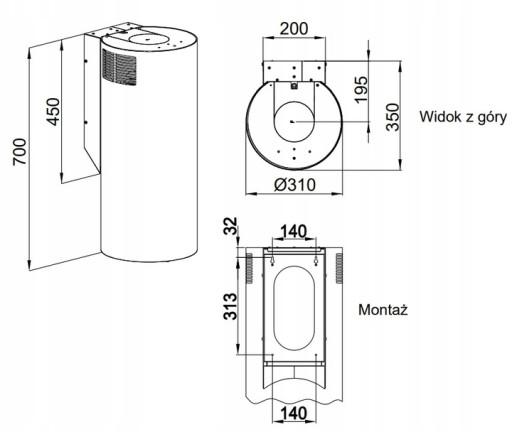 Prawidłowa praca okapu w trybie wyciągu, wymaga podłączenia rury odprowadzającej do systemu wentylacyjnego. Opary, tłuszcz i niechciane zapachy są filtrowane i usuwane przez komin wentylacyjny. Zestaw nie zawiera rury odprowadzającej.