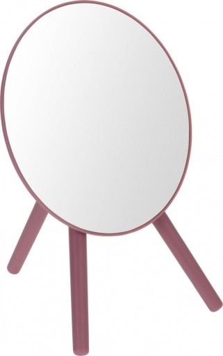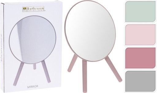 Okrągłe lustro podręczne, stojące na trzech plastikowych nóżkach. Praktyczne i stylowe, idealne do makijażu. Dostępne w kilku wariantach kolorystycznych.