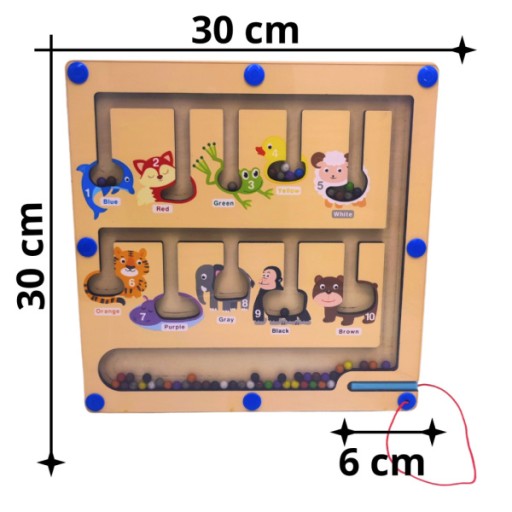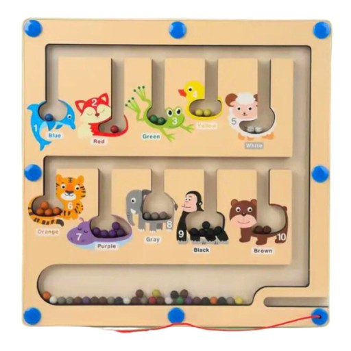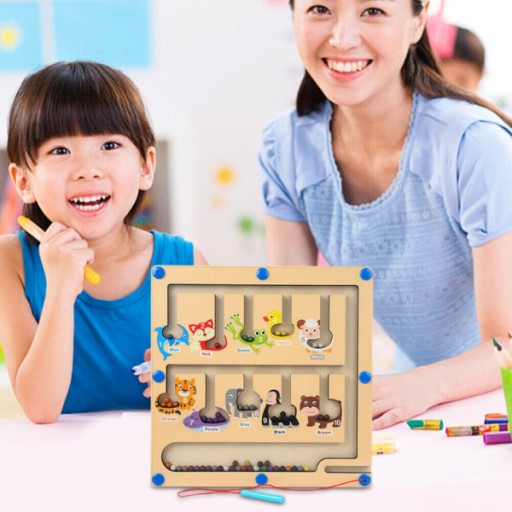 - Magnetyczna zabawka z koralików została zaprojektowana specjalnie do odkrywania kolorów i liczb. Za pomocą pióra magnetycznego, można łatwo przenieść koraliki w labiryncie. Umieść koraliki w każdym dopasowane kolory puszka farby. A magnetyczny labirynt koralików przyjmuje zamkniętą konstrukcję, która nie straci żadnych koralików.