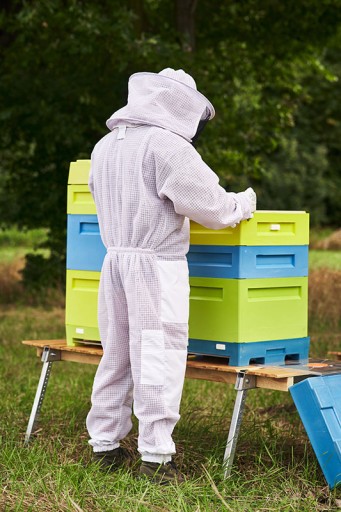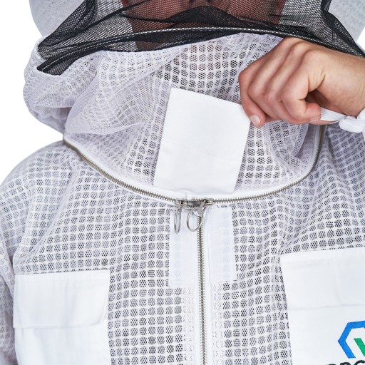 Kombinezon wyposażony jest w metalowe zamki błyskawiczne firmy YKK posiadającej najlepsze zamki błyskawiczne na rynku.Zawiera także 4 kieszenie, gumki na kciuki zapewniające ochronę przed użądleniami oraz uniemożliwiające podwijanie się rękawów, kombinezon posiada również ściągacze umiejscowione w pasie i na kostkach poprawiające komfort użytkowania i chroniące przed dostawaniem się pszczół do środka kombinezonu.