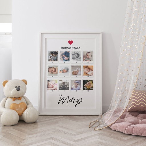 Pierwsze urodziny to z pewnością jeden z najważniejszych dni w życiu rodziców jaki i samego dziecka. Zapamiętaj ten pierwszy rok razem z naszym pięknym plakatem stworzonym specjalnie na tą okazję.