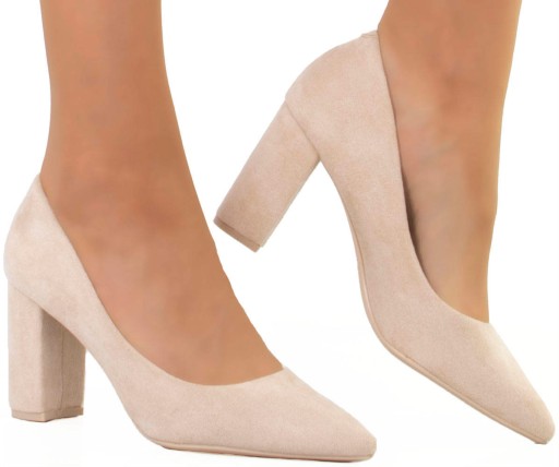 3666 BEŻOWE ZAMSZOWE CZÓŁENKA NA SŁUPKU SZPIC 38