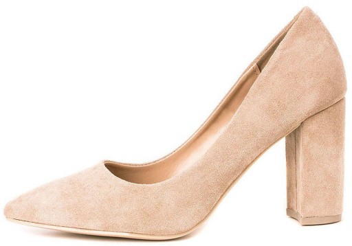 CZÓŁENKA BEŻOWE ZAMSZOWE NA SŁUPKU W SZPIC 38