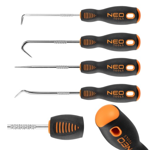 Haki 150 mm, zestaw 4 szt. 04-231 marki NEO to komplet czterech narzędzi o długości 150 mm, przeznaczonych do wyjmowania uszczelek. Posiadają wygodną rękojeść wkrętakową, której nadano trójgraniasty, ergonomiczny kształt. Dodatkowo, znalazło się w niej wyprofilowane oparcie dla kciuka, które wpływa na mniejsze obciążenie dłoni podczas wykonywanych zadań oraz pozwala uzyskać swobodę działania. Grot wykonano ze stali węglowej, z kolei uchwyt pokryto tworzywem TPR - odpornym na działanie chemikaliów, smarów i olejów mineralnych. Zestaw haków od marki NEO przeznaczony jest dla mechaników, budowlańców i majsterkowiczów.