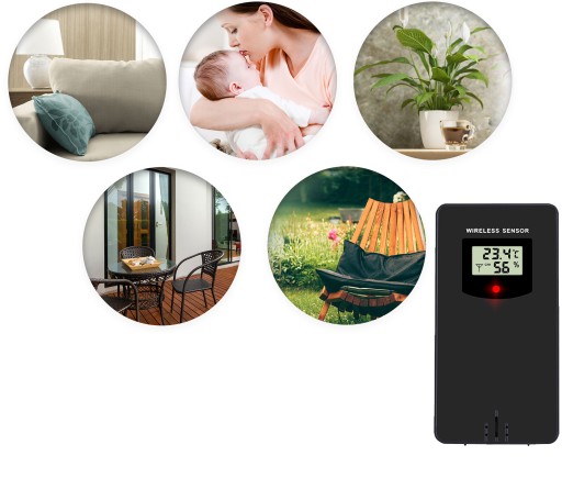 Urządzenie automatycznie synchronizuje się z czujnikiem i ma możliwość podłączenia dodatkowych czujników. Jednocześnie wskazuje pomiary ze stacji oraz z czujnika, które łatwo odczytasz na wyświetlaczu.