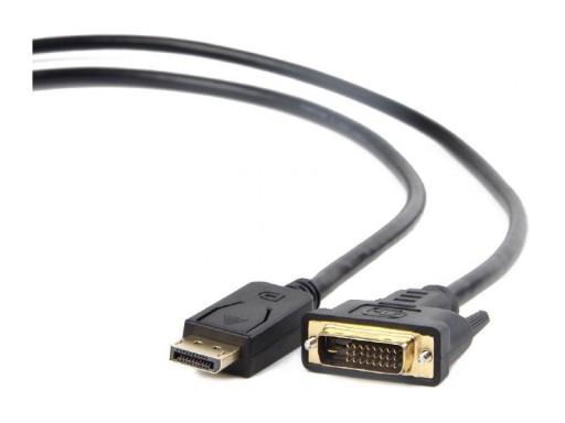 Kabel DisplayPort - DVI-D GEMBIRD 1.8m umożliwia podłączenie odbiornika DVI do złącza DisplayPort. DVI służy do podłączenia kompatybilnych monitorów lub projektorów do komputera. Max. rozdzielczość: 1920 x 1080 pikseli.