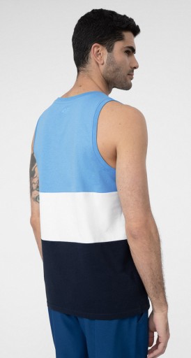 Męska koszulka na ramiączkach firmy 4F. Bardzo dobry, bawełniany materiał i wysoka jakość wykonania gwarantuje wygodę i długotrwałe użytkowanie. Krój "regular fit". Koszulka posiada nadruk z przodu logo na karku. Głębokie wycięcia na ramiona i bokserski krój zapewniają pełną swobodę ruchów.