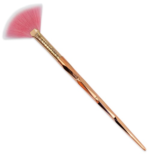 Pędzel wachlarzowy to narzędzie do makijażu, które zostało zaprojektowane specjalnie do nakładania rozświetlacza na twarz. Świetnie sprawdzi się również do odpylania paznokci z nadmiaru pyłu powstałego podczas piłowania.