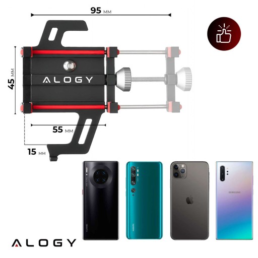 - Kompatybilny z większością dostępnych na rynku smartfonów (szerokości od 55 mm do 95 mm)