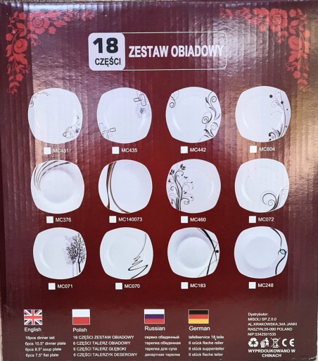 TALERZE SERWIS KOMPLET OBIADOWY KWADRAT 18 EL