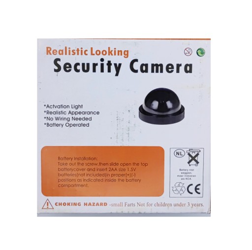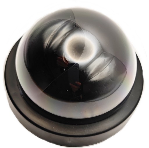Atrapa kamery do monitoringu do złudzenia przypomina wyglądem prawdziwą profesjonalną kamerę kopułkową. Kamera posiada migającą diodę imitującą fałszywy alarm. Zastosowanie imitacji kamery zwiększa bezpieczeństwo przed włamaniem i kradzieżą w domu, sklepie, czy innym obiekcie.