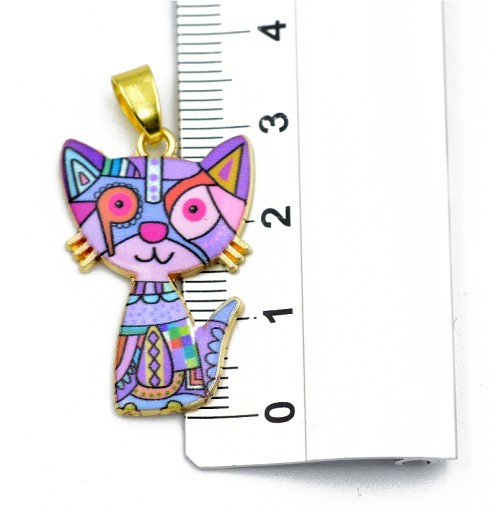 Wisiorek z zawieszką kolorowy KOTEK + sznurek woskowany