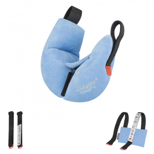 Poduszka stabilizująca SleepFix® XS może być stosowana w podróży samochodem, samolotem lub pociągiem i zawsze daje gwarancję, że dziecko może się zrelaksować i spokojnie zapaść w drzemkę. SleepFix utrzymuje głowę małego pasażera w pionie, w niezmiennej, bezpiecznej pozycji, uniemożliwiając jej pochylanie się na boki lub do przodu. Dzięki utrzymaniu głowy w pionie, ciało dziecka nie pochyla się do przodu i, zapięte pasami fotelika, pozostaje w optymalnej pozycji, co jest szczególnie istotne podczas wypadku drogowego. SleepFix® XS jest doskonałym gwarantem komfortu, ale przede wszystkim bezpieczeństwa. SleepFix® XS składa się z dwóch miękkich poduszek obejmujących szyję dziecka, pasków mocujących oraz przeciwwagi. Poduszki łączy się ze sobą pod szyją dziecka za pomocą rzepów. Aby wyjąć dziecko z fotelika samochodowego wystarczy rozpiąć rzepy i rozsunąć poduszki na boki. Dzięki temu, że są przymocowane do zagłówka, będą zawsze pod ręką, nie będą spadać na siedzenie, i nie trzeba będzie ich szukać. Starsze dziecko (używające produktu Basic), które poczuje się senne w czasie jazdy będzie mogło samo je bez problemu założyć na szyję i zapiąć pod brodą.