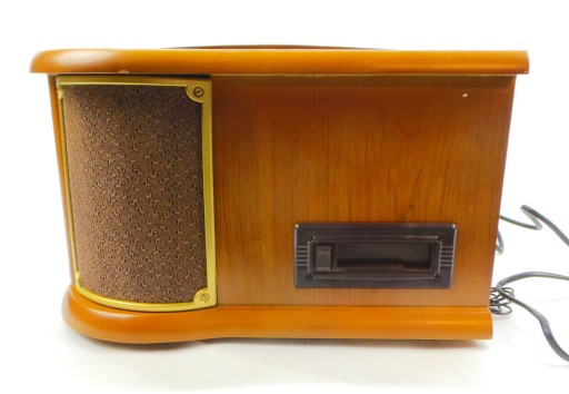 System muzyczny retro w drewnianej obudowie z gramofonem, CD, USB, kasetą oraz radiem FM i DAB