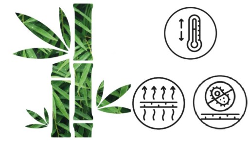Bambus charakteryzuje się wyższą oddychalnością i właściwościami termoregulacyjnymi. Włókna bambusowe są również o 2-3°C chłodniejsze od temperatury otoczenia.