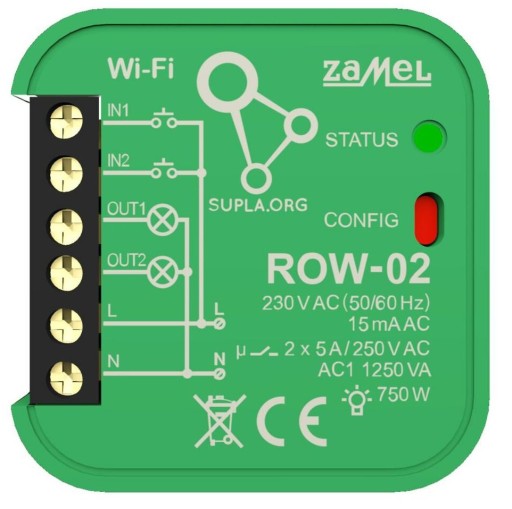 Sterownik ROW-02 umożliwia sterowanie oświetleniem za pomocą przycisków lub łączników w trybie bistabilnym. Dodatkowo dzięki wbudowanemu modułowi wi-fi możliwe jest zdalne zarządzanie oświetleniem za pomocą aplikacji na smartfonie. Urządzenie informuje o stanie oświetlenia. Użytkownik może sterować oświetleniem z dowolnego miejsca na świecie. Dzięki chmurowej aplikacji możliwe jest także automatyczne uruchomienie lub wyłączenie oświetlenia wg zapisanego na chmurze harmonogramu.