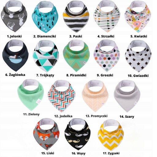 5x Śliniaczek apaszka regulowana dla dzieci z bawełny na lato WYBÓR WZORÓW