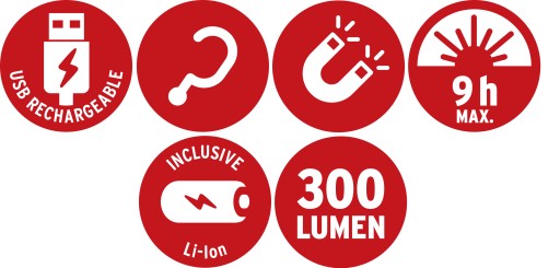 - Tryb oszczędzania energii: moc światła może być zredukowana do 30% * Zintegrowany akumulator Li-Ion