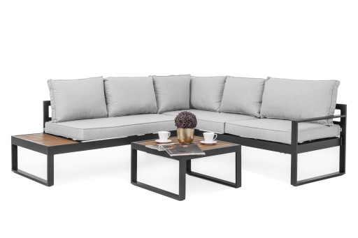 ZESTAW MEBLI OGRODOWYCH NAROŻNIK NOWOCZESNY WYKONANY Z ALUMINIUM DLA 5 OSÓB