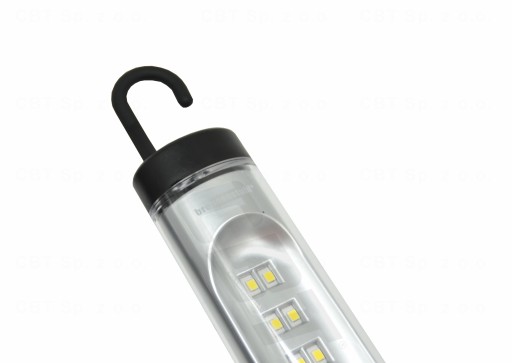 Posiada praktyczny, wysuwany hak do zawieszenia, umożliwiający łatwe mocowanie lampy w różnych miejscach. Dodatkowo, jej ergonomiczna konstrukcja jest niezwykle komfortowa w trakcie użytkowania. Rękojeść została pokryta warstwą gumy, co zapobiega jej ślizganiu się z rąk.
