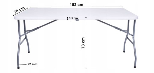 Składany stół kempingowy/cateringowy. Bardzo praktyczny i lekki. Konstrukcja wykonana ze stali. Blat wykonany z mocnego tworzywa sztucznego. Stolik po złożeniu tworzy praktyczną walizkę, dzięki czemu zajmuje małą przestrzeń i jestłatwy do przeniesienia.