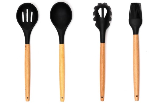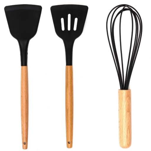Przybory kuchenne zestaw 12szt silikonowe drewno